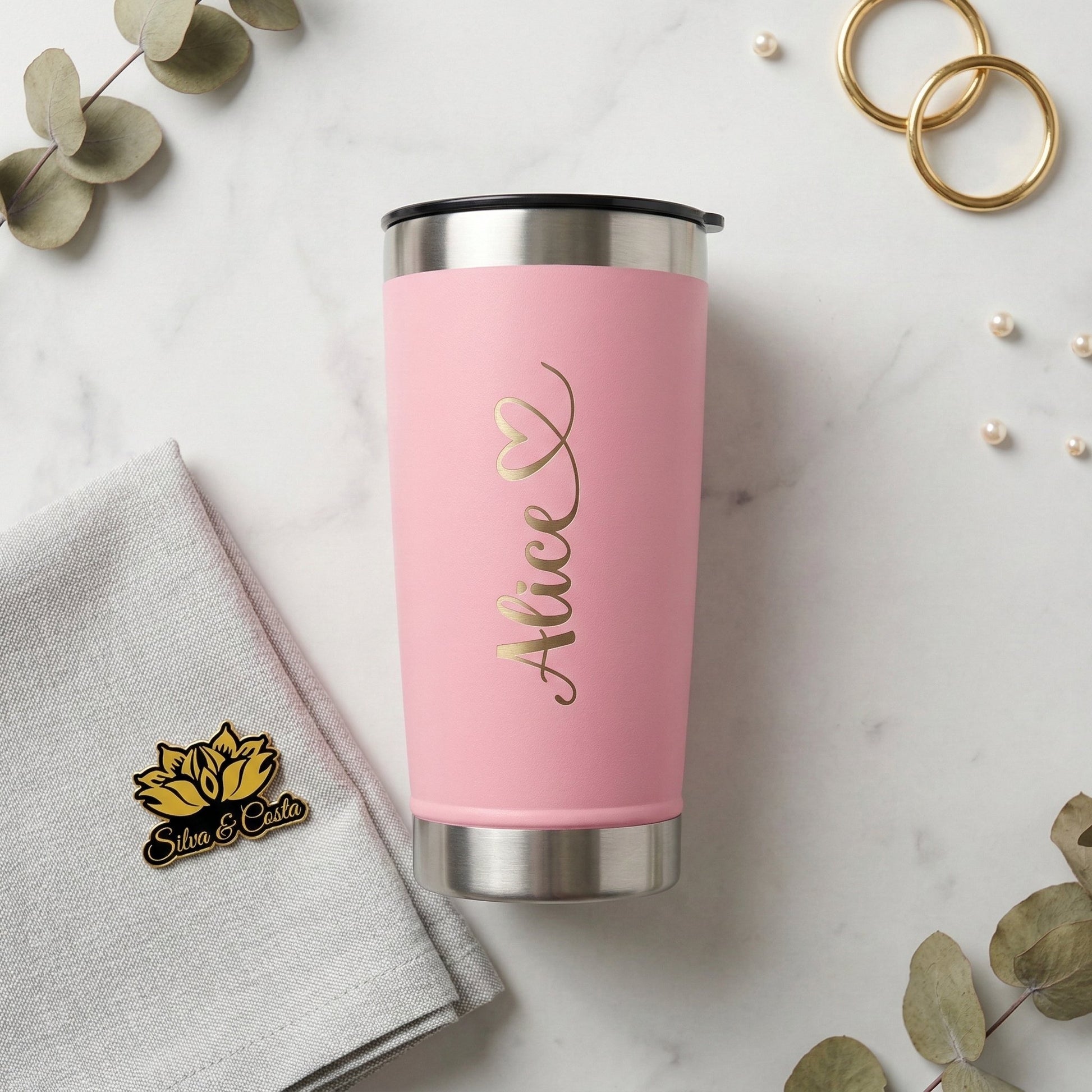 Sobre técnicas: a personalização pode ser feita por gravação a laser (marca “que entra” no material) ou impressão UV (cores vivas e alto impacto visual). Para presente, o que decide é o resultado que você quer ver e o cuidado de uso para preservar o acabamento.