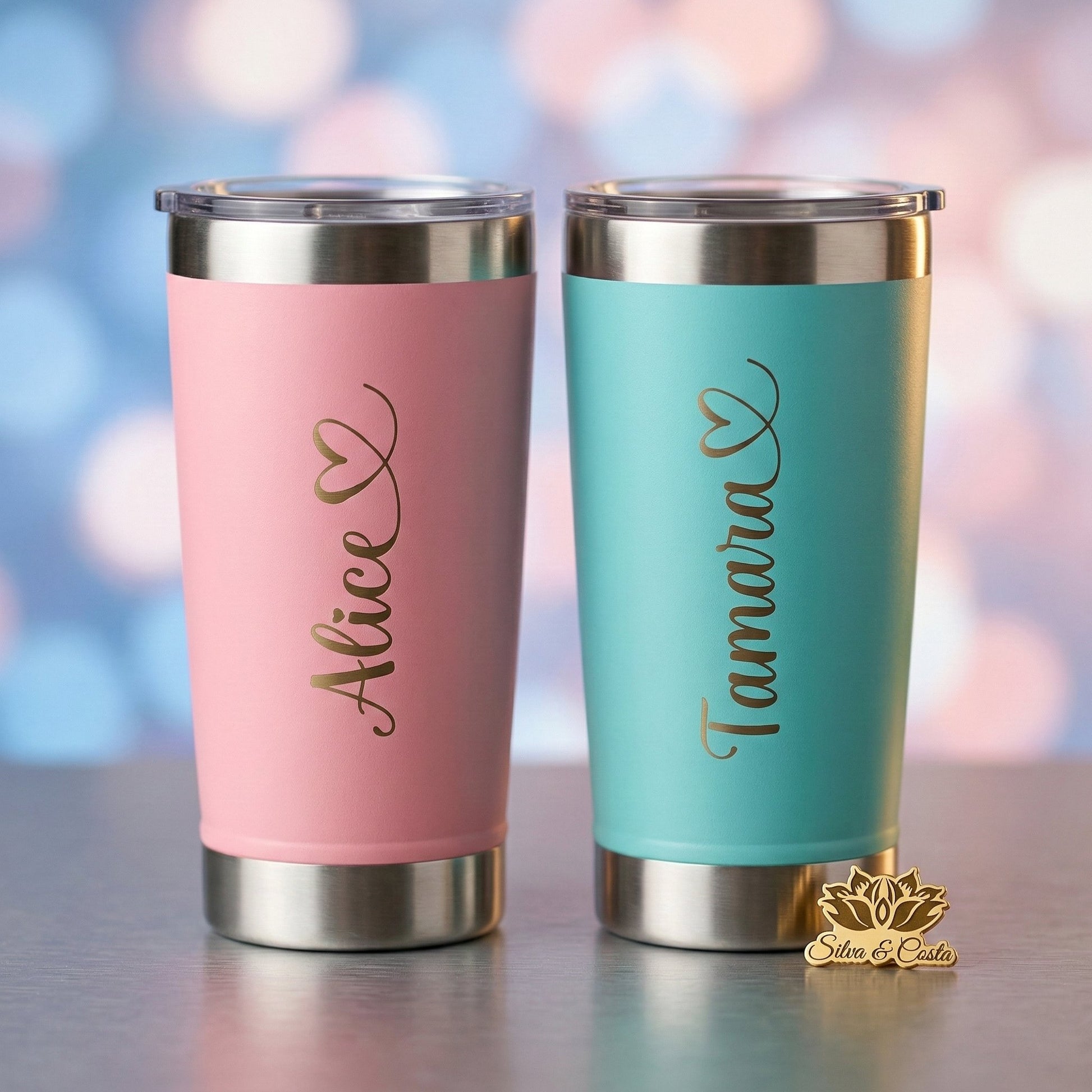 Com foto + nome (e até uma frase curta), esse tumbler vira um item de uso real e valor emocional — do tipo que a pessoa cuida porque tem história.
