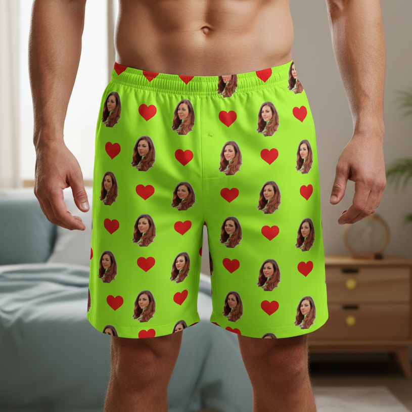Samba Canção Verde Limão Personalizada Com Fotos e Corações Presente Casal